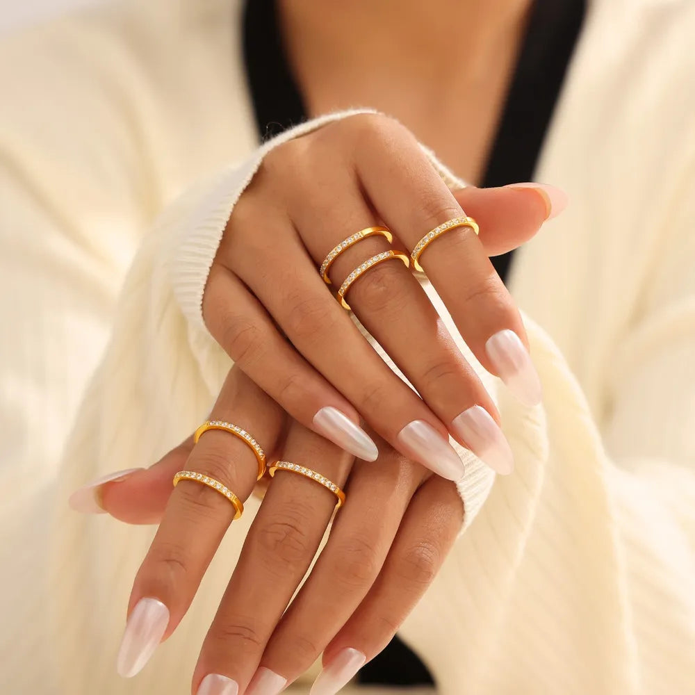 Zircon fine ring stackable accessory niche and simple titanium steel PVD plated ring for women